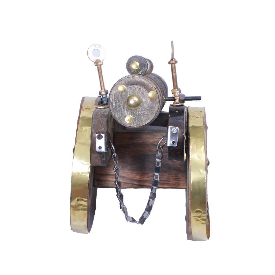 The wooden metal canon top showpiece for home décor is constructed of fine wood that has been polished and whose quality has been guaranteed. This wooden ethnic collectable Cannon will remind you of the past. The item can be employed as a collectable showcase that provides your living area with a regal feel. Your house decor would seem elegant with this Canon. Your living room may also benefit from having it. It might make a wonderful present for religious events or holidays. This is a great gift for a friend or family member who is currently active or was active in the military. making the tank perfect to display on a desk. This shell-casing-shaped army tank would make a great military gift or a great desk accessory for your own office.