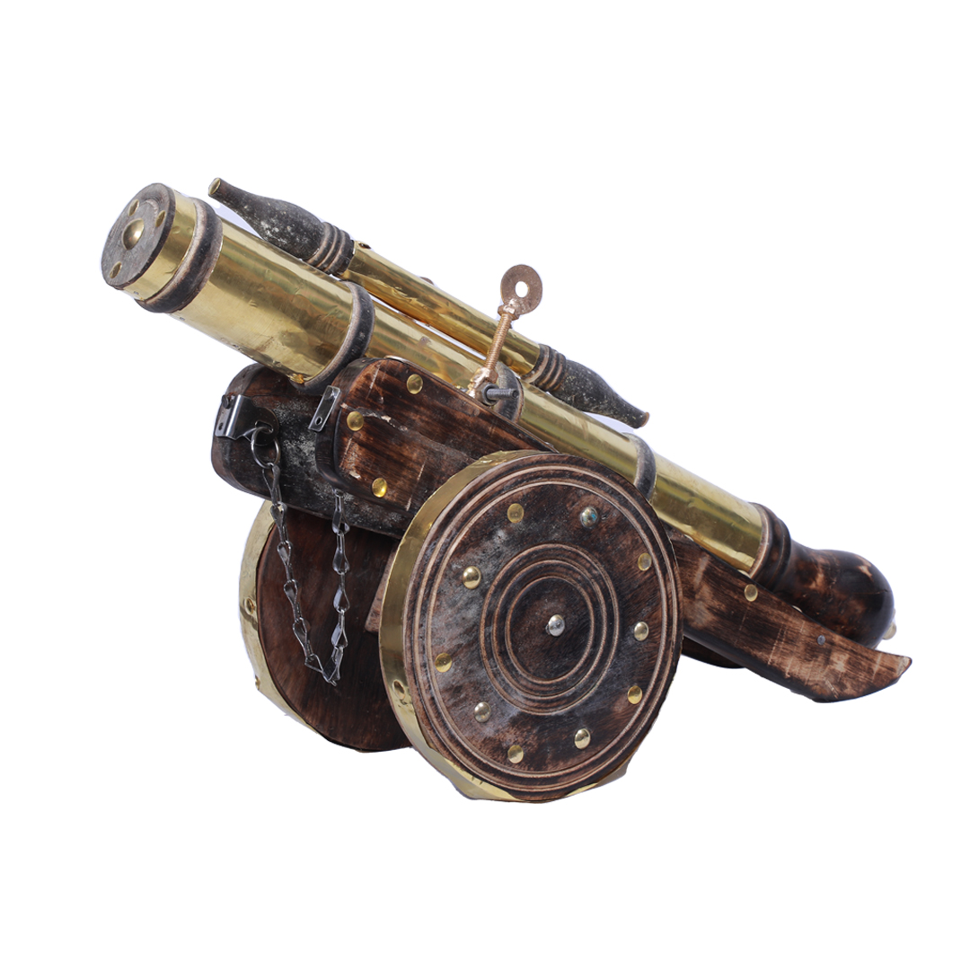 A classic and Royal touch antique vintage style canon showpiece for your home, office or desk decor. This Beautiful Dummy wooden canon Decorative Showpiece comes with a golden color finish and wooden body to give your decoration a long lasting life. It is durable and of light weight. This Dummy wooden canon Showpiece can be used as home decor, office decor, room decor, desk, drawing room decor, shelf decor or as a gift item for various occasions.Exhibit your classy taste among your guests by keeping this graceful antique showpiece in your living room. It is an exclusive show piece for your office/home. It is also a unique gifting option to your friends and relatives on any occasion.