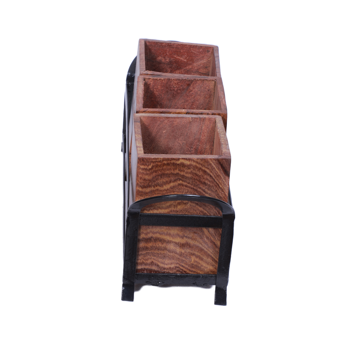 Wooden Metal Cutlery Holder/ Trio Wooden Metal Cutlery Holder
