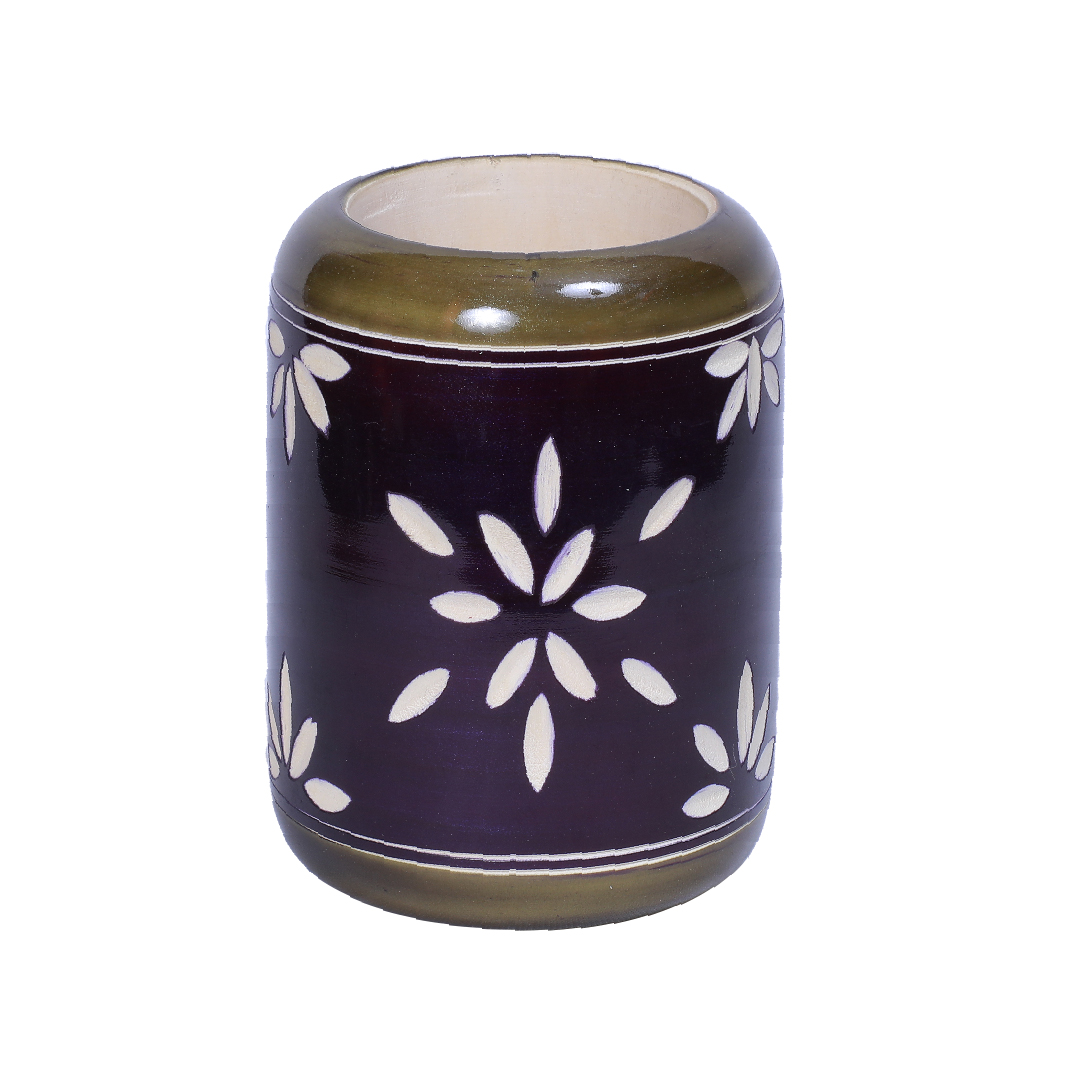 The lovely handmade wooden pen stand is made by artisans from Channapatna. You can use this handcrafted pen stand as the focus of attention in your study room, office cabin, reception area, counter, etc. This wooden pen stand was made by artisans using a traditional technique. This artwork is produced after several steps of rubbing, colour coating using non-toxic vegetable dyes, and polishing. Ideal for gifting to family and friends or office friends. This handcrafted showpiece is an ideal item for your home and office decor.
